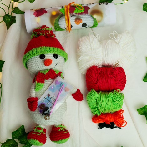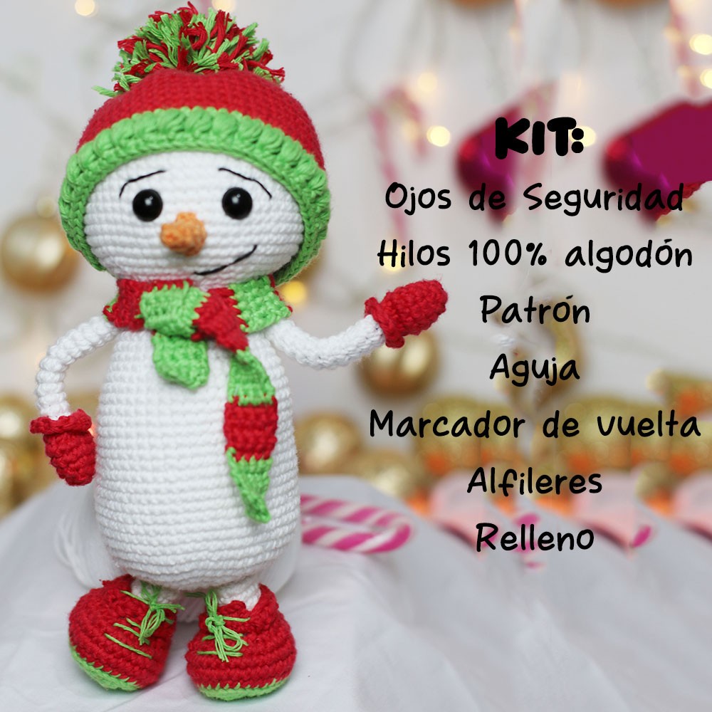 Crea la magia invernal con nuestro Kit Amigurumi Muñeco de Nieve. Teje tu propio muñeco de nieve adorable con hilos de calidad y un patrón completo. ¡Dale vida al espíritu de la temporada con tus propias manos!