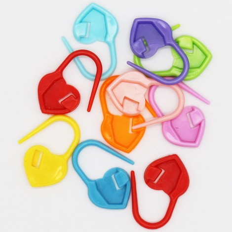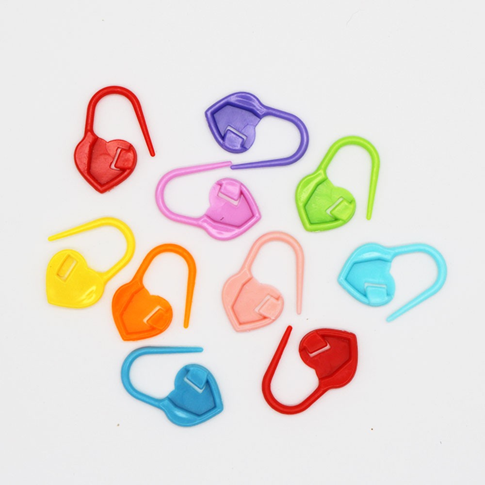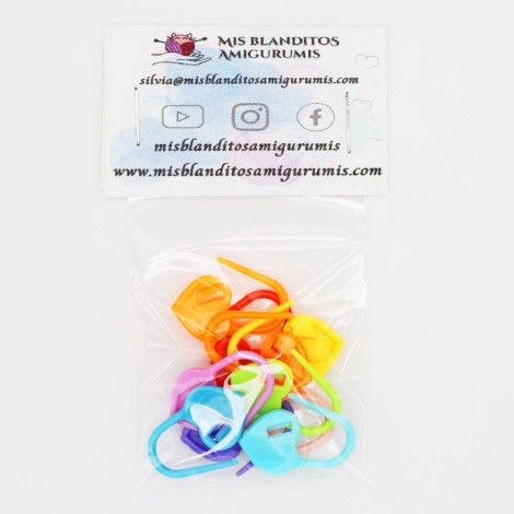 Descubre nuestros Marcadores de Vueltas en forma de corazón, cada paquete contiene 10 unidades en colores variados, una herramienta esencial para un seguimiento preciso de tus patrones de tejido.